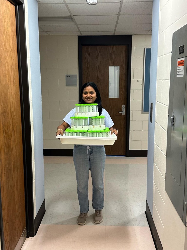 One month later, I am back in the lab, with a behind-the-scenes update on the project behind the electrolyte leakage measurements. Dr. Malini Muthu Karpagam, a postdoc at the PLACE Lab with a PhD in Plant Physiology, has kindly agreed to tell me about her year long research project on the tolerance of native Northeastern Coniferous trees to extreme weather conditions, and what the results could mean for informing future climate change resilience and forestry practices. Malini is from Southern India, and completed her PhD at the Indian Agricultural Research Institute in New Delhi, where she experimented on the heat tolerance of rice crops. Now, in her second year as a postdoc at Smith, she continues her line of questioning on the plant-stress dynamics, but on a much broader, ecophysiological scale.