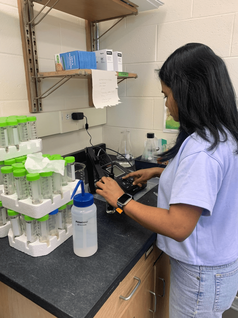 When asked about her favorite part of research, Malini shares that days spent sampling in the field make the whole process worth it. She says that “being in nature – the little hikes you do, the location,” are all part of seeing the larger picture of the research, and connect directly with the trees that are being measured. Malini also really enjoys data analysis, where all the hard work done sampling and measuring is translated into larger trends that either match or challenge the hypothesis. Finding patterns in the data, and seeing connections between all the parameters being measured, “that’s where the study becomes more meaningful,” she says.