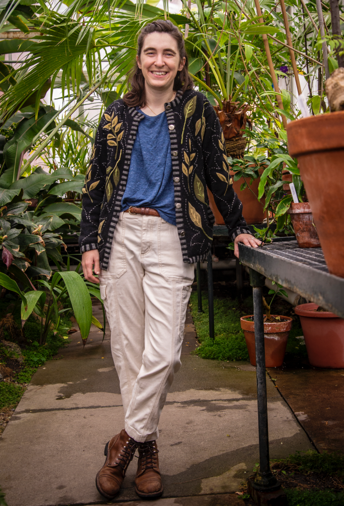 I’m Avery Maltz (he/him), an Ada Comstock Scholar majoring in biology and minoring in studio art. I am a research assistant in the Place Lab and a conservation intern at the Smith Botanic Garden. My current research focus is on plant conservation and ecology, and I would like to study tree canopy conservation in the future. I was an artist for many years before becoming a student, and am now focusing on installation and socially engaged art while at Smith. In my spare time I like going for bike rides, geocaching, caring for my carnivorous plant collection, and walking my cat in a stroller.